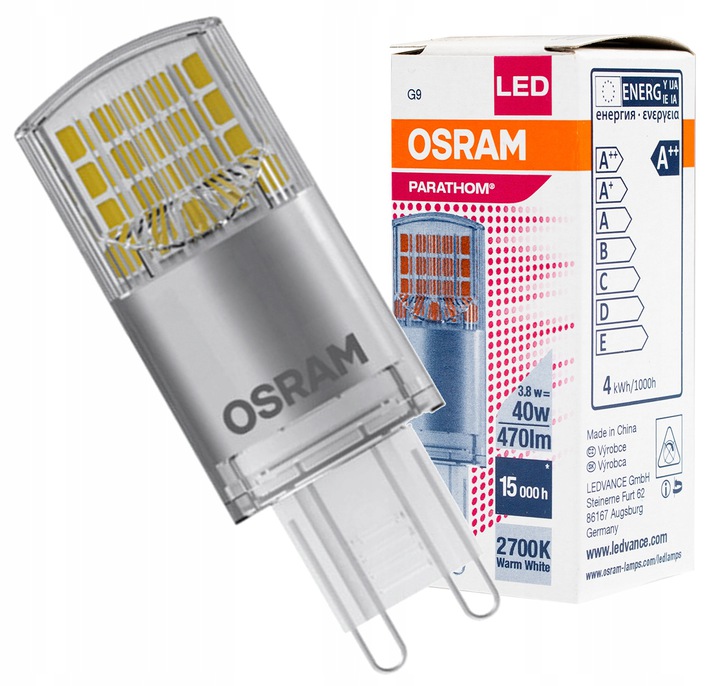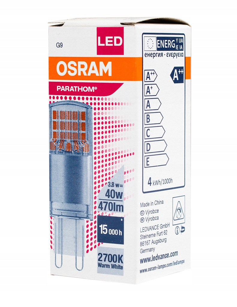 Żarówka KAPSUŁKA PARATHOM LED PIN G9. Renomowanej i uznanej w branży oświetleniowej firmy OSRAM z trzonkiem G9 i mocy wynoszącej 3,8W. Odpowiednik tradycyjnej żarówki halogenowej (40W) to wysokiej jakości źródło światła LED. Co więcej kapsułka wykonana została przy użyciu nowoczesnych rozwiązań wykorzystujących innowacyjną technologię diod LED. Charakteryzują się wysoką wydajnością parametrów świetlnych. Są jednak, wiernym odwzorowaniem kolorów oświetlanych przedmiotów oraz wyjątkowo długą trwałością.