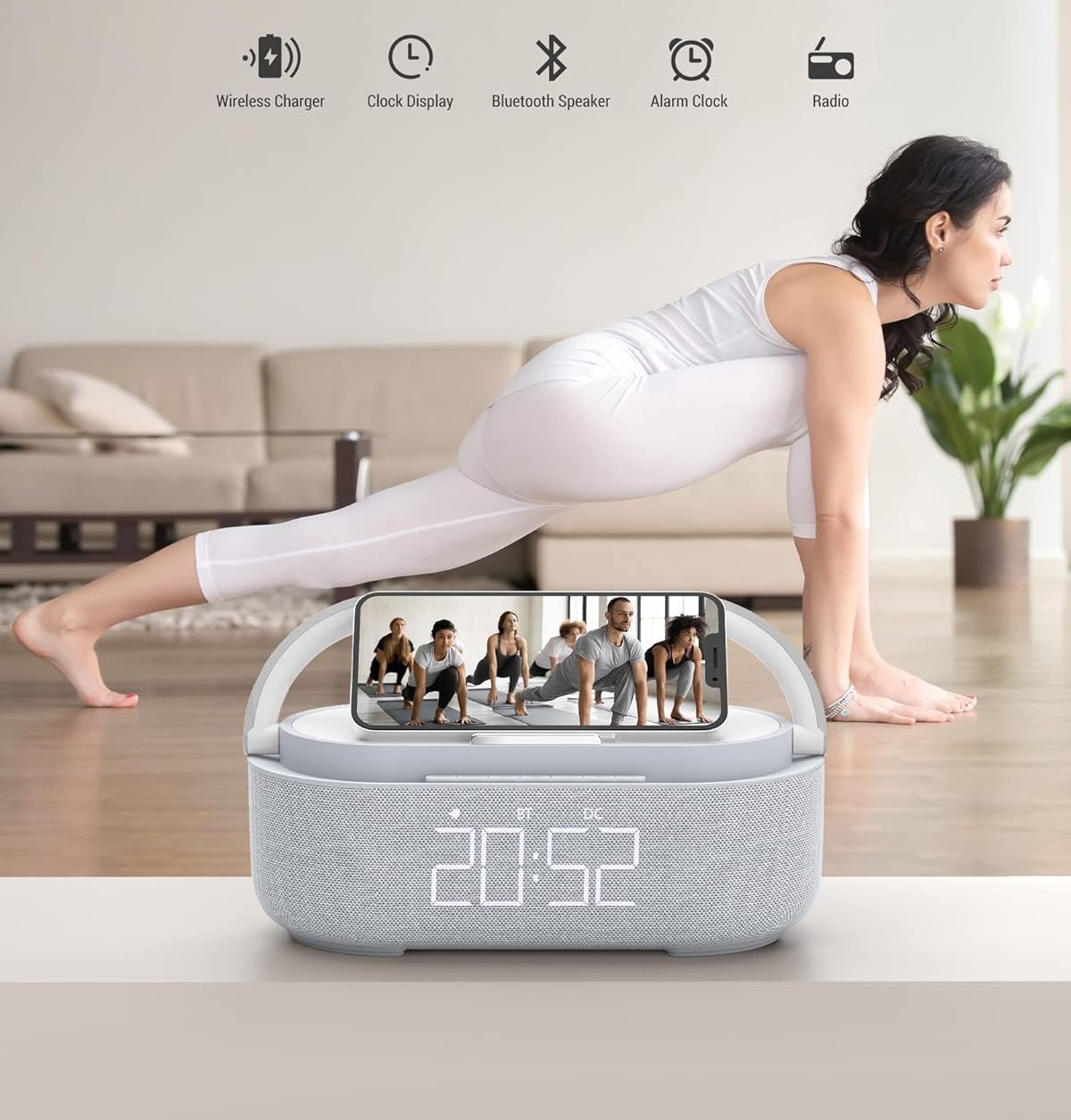 Zegar Budzik Głośnik Bluetooth Bezprzewodowa Ładowarka