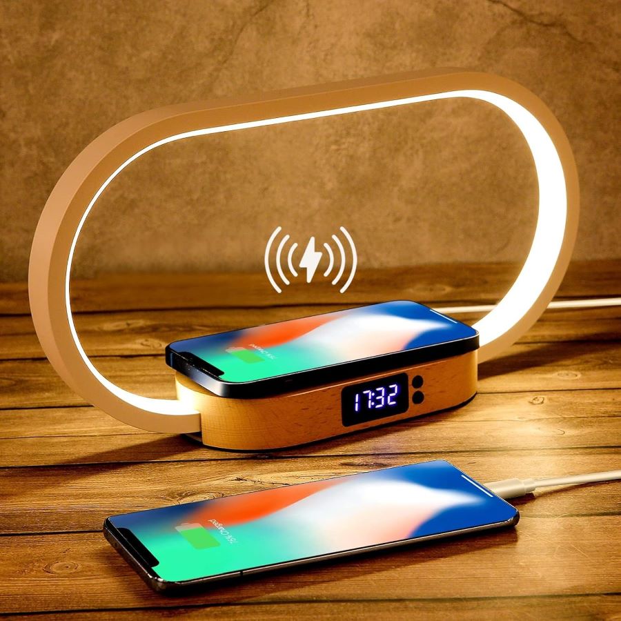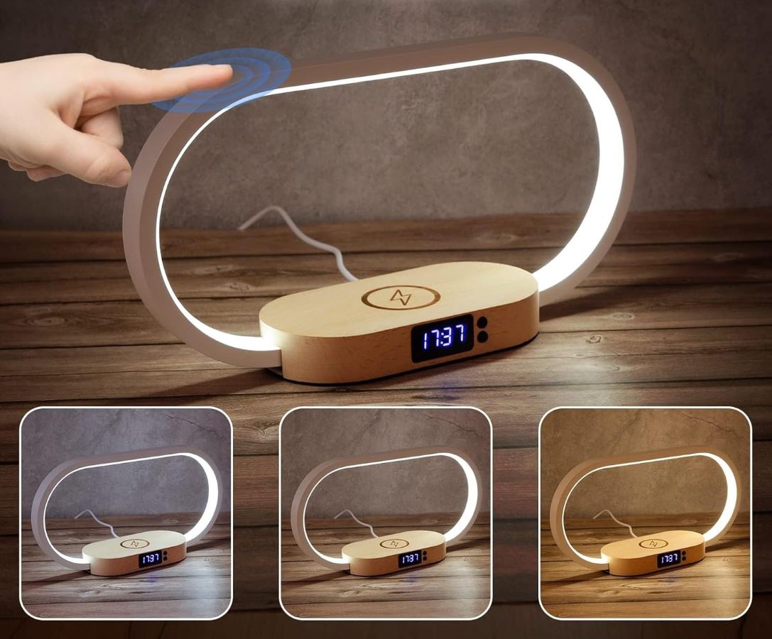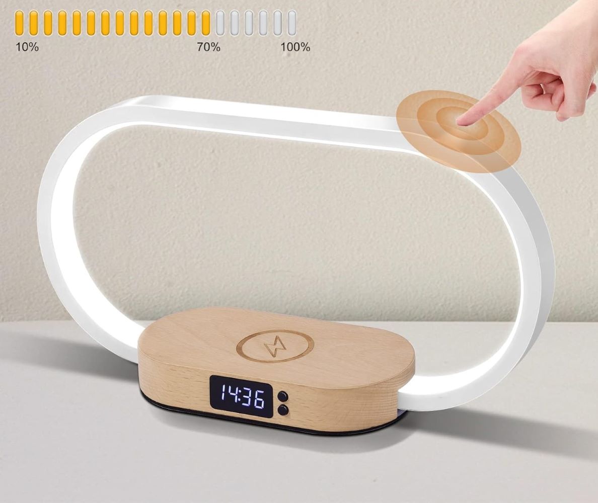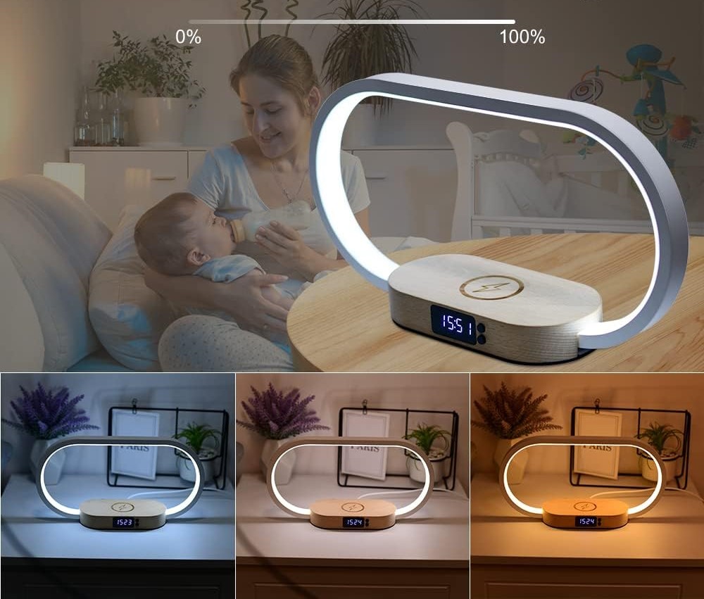 DOTYKOWA LAMPA STOŁOWA 4 W 1: lampa biurkowa LED, cyfrowy budzik, bezprzewodowa ładowarka, lampka budząca są zintegrowane z projektem. Możesz używać tej wielofunkcyjnej lampki nocnej podczas pracy, nauki i snu, to ładny budzik przy łóżku i funkcja bezprzewodowej stacji ładowania. Miękkie i ciepłe oświetlenie pozwala zachować dobry widok nawet podczas karmienia dziecka, chodzenia do toalety, czytania książek w nocy.