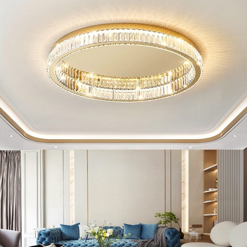 Kryształowa luksusowa lampa sufitowa Lustro Ring glamour w kolorze złotym, idealna do sypialni, salonu, jadalni, korytarza.