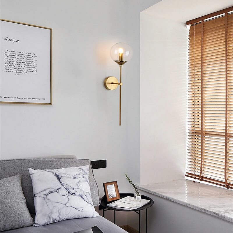 Elegancka i minimalistyczna lampa ścienna Perez art deco. Kinkiet w kolorze złotym idealny do sypialni, salonu, korytarza.
