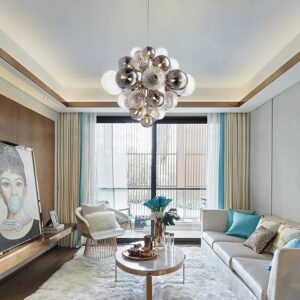 Wnętrza, które łączą tradycję z nowoczesnością, często korzystają z detali o wyrafinowanym charakterze. Obok klasycznych opraw doskonale sprawdzi się lampa wisząca, która dodaje wnętrzu lekkości i staje się subtelnym akcentem dekoracyjnym. W większych przestrzeniach, takich jak salon czy jadalnia, warto postawić na efektowny żyrandol lub lampy wiszące glamour, które wprowadzają odrobinę luksusu i blasku. Tego typu oświetlenie idealnie podkreśla styl glamour do salonu, tworząc atmosferę elegancji i ciepła. Szlachetne szkło, szklany klosz lub przeźroczysty detal pięknie rozpraszają światło, nadając wnętrzu wyjątkowego charakteru. Każda z tych propozycji to elegancki i stylowy sposób na podkreślenie klasycznego piękna i ponadczasowej harmonii przestrzeni.