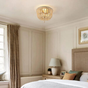 Lampa Sufitowa Plafon Drewniana Koraliki Boho